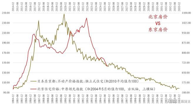 只要整个社会的债务通缩螺旋启动,再加上严峻的老龄化形势,哪怕是日本东京拥有土地产权的独立住宅,1984-1995年的价格和走势,依然与我们2014-2025年北京上海的房价(以公寓为主)形成镜像般的对比。