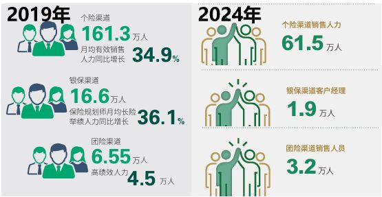 巅峰时期,中国人寿2019年末时的总销售人力达到184.8万人,其中个险销售人力161.3万人。