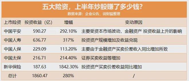 实际上,今年上半年,猫崽就统计过五大险资炒股的收益表现。