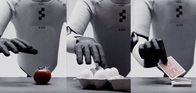 外观上,Figure 03和前两代机器人最大的不同是,Figure 03穿上了衣服。根据Figure发布的视频,新一代的产品被灰色织物覆盖,隐藏了内部的电缆和机械架构。视频中,Figure 03展现了五套左右的不同“穿搭”,相比前两代机器人更具“活人感”一些。