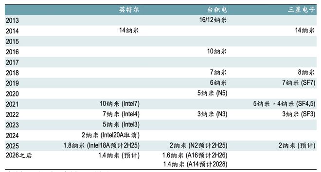 从芯片制程规划来看,台积电拥有从3nm到7nm及以上的完整制程组合,其2nm工艺预计于2025下半年量产。英特尔方面,其Intel 3/4/7等制程已趋成熟,而作为关键节点的Intel 18A工艺同样定于2025下半年量产。