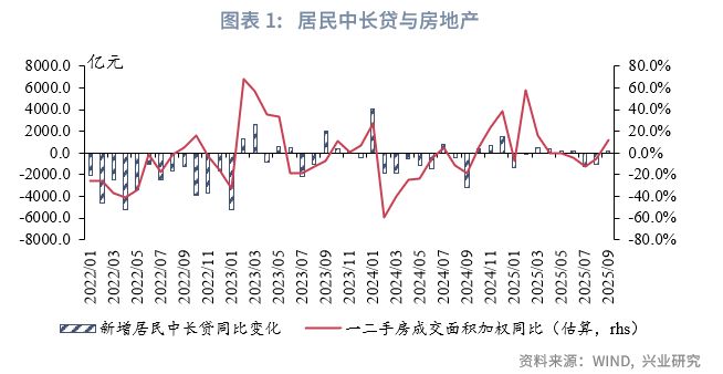从居民贷款来看,9月居民短期贷款延续同比少增,中长期贷款同比多增成为亮点。具体来看,新增居民短期、中长期贷款分别为1421亿元、2500亿元,分别同比变化-1279、200亿元。居民短期贷款增长乏力,新增数值明显低于过去五年平均值3313亿元。根据财政部政策,9月1日起居民个人消费贷款可享财政贴息,促进效果或将在第四季度购物节前后得到进一步体现。居民中长期贷款方面,9月北京、上海、深圳三个一线城市优化房地产政策措施,释放居民购房需求,促进居民中长期信贷投放改善。9月,我们估算的一、二手房成交面积同比录得12.0%,同比翻正,居民购房需求得到提振,居民中长期贷款转为同比多增。