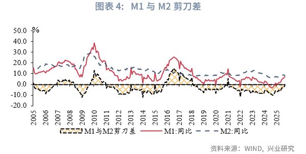 M1方面,9月M1同比录得7.2%,较前月上行1.2个百分点。9月以来,部分省市使用贷款或专项债清偿拖欠账款行动有所提速,同时企业与居民定期存款持续活化,或推高M1读数。9月,M1与M2剪刀差较前月继续缩窄1.6个百分点至1.2%,资金活化进一步提速。