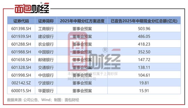 上市银行的分红方案一直备受投资者关注,2025年中报披露结束后已有多家上市银行先后公告拟进行2025年中期分红。