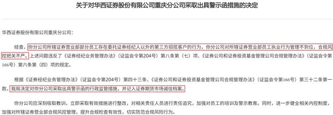 不仅面临诉讼,今年上半年华西证券重庆分公司证券营业部、义乌商城大道证券营业部接连收到两张监管警示函,问题直指员工执业行为管理不到位、合规风控把关不严等问题。反映出华西证券对分支机构监督管理机制的不完善,合规短板暴露无疑。
