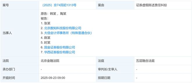 据公开资料,韩某、陶某与数知科技、华西证券等相关证券虚假陈述责任纠纷于2025年9月23日开庭审理。屡次在保荐业务上“撞南墙”的华西证券,这一次面临着巨额索赔与声誉受损的双重风险。