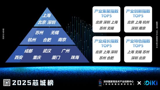 “湾芯展”举办期间,深圳发展改革研究院发布了发布半导体产业级评估体系《中国芯城榜》,以产业集聚、产业创新、产业成长、产业特色四大维度,为337城精准“量芯”,上海、北京、深圳领衔第一梯队。