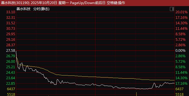 值得注意的是,善水科技股价今日大跌17.04% 。