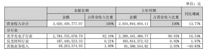 作为中国国内唯一一家规模化制造光学元器件的专业厂家,水晶光电在今年上半年就已实现营收超30亿元,实现净利润超5亿元,同比均有较大幅度上升。