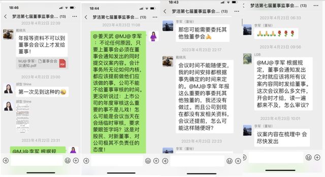 4月20日,第七届董事会第一次会议的议案及现场投影照片都是按照上述内容显示,但是会后董秘李军在给董事签署的决议上,删去了议案中过渡期时间安排和对管理层的限制性条款。陈洁及时任董事刘彦茗、罗庚宝提出异议,要求补充议案全部内容再签字,但董秘李军将三位董事的投票视为弃权并改变决议公告。