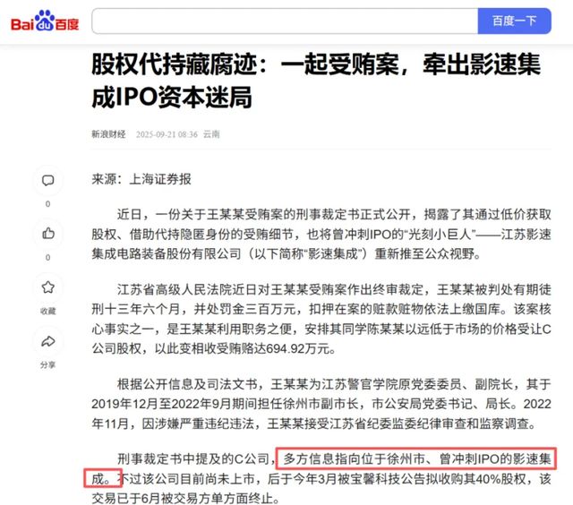 屋漏偏逢连夜雨,在IPO和“卖身”上市公司两条路都失败后,影速集成近日又与一起受贿案所关联。