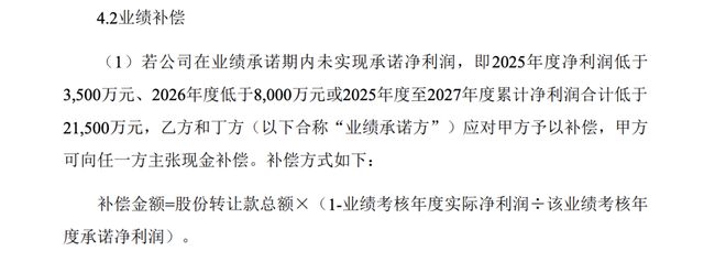 为此,双方还签订了业绩对赌条款。根据《收购协议》,影速集成被要求在2025年至2027年的三年间,实现累计不低于2.15亿元的净利润。也就是说,影速集成需要在短期内扭亏为盈。如果无法完成业绩对赌,则要进行相对应的现金补偿。