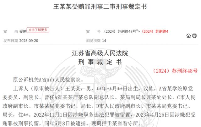 经法院查明,2011年至2022年间,王巧全利用职务便利,在企业经营、项目承揽、涉案资产处置及干部提拔等方面,为多方提供帮助,收受财物折合人民币3031万余元。2023年底,江苏省某中级人民法院以受贿罪判处王巧全有期徒刑十三年六个月,并处罚金300万元。对此,王巧全表示不服,提出上诉,2024年12月,江苏省高院二审裁定,驳回上诉,维持原判。