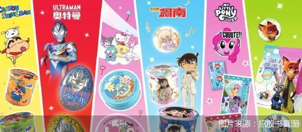 早早意识到IP趣玩食品的潜力,自2009年取得奥特曼授权并将其形象首次融入糖果产品开始,金添动漫便走上“IP+食品”的道路。目前,金添动漫已拥有26个IP,且全部来自外部授权,包括源于日本的奥特曼、吉伊卡哇、三丽鸥、柯南、蜡笔小新,源于美国及欧洲的小马宝莉、小猪佩奇,以及来自中国本土的哪吒之魔童闹海、猪猪侠、熊出没等。