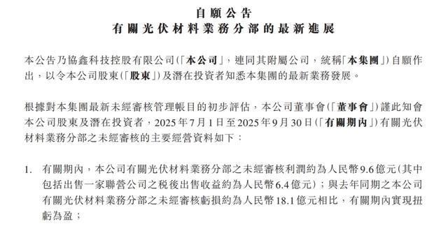 前两天公布的三季度业绩公告,光伏材料业务利润9.6亿,其中卖了一家子公司6.4亿,实际利润只有3个亿左右。