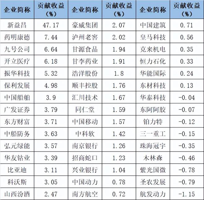 来源:Wind,截至2025年6月30日,注:贡献收益通过报告期持仓占比与个股季度收益相乘得到,并假定报告期持仓保持相对稳定