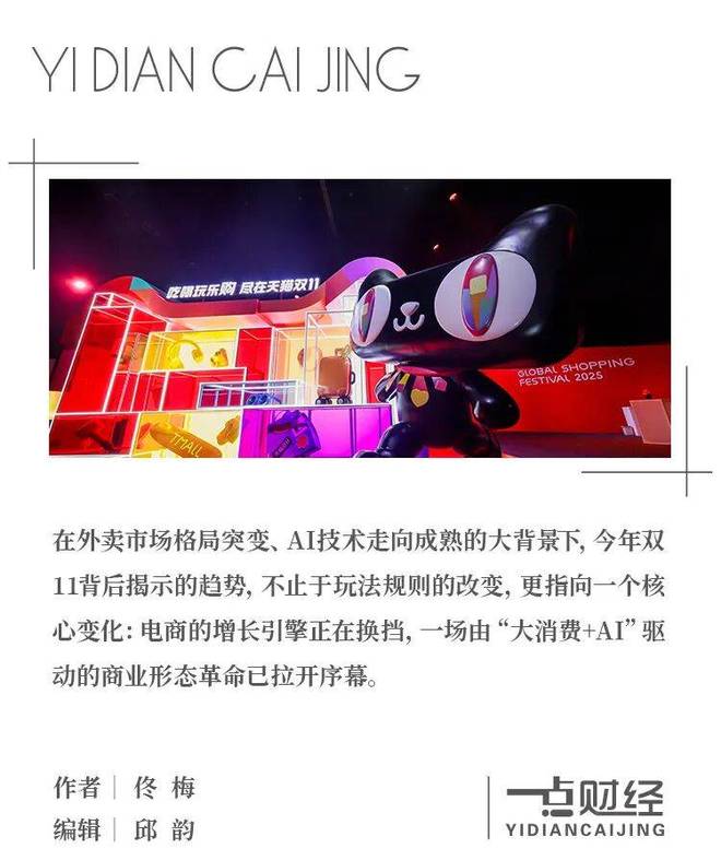 而在外卖市场格局突变、AI技术走向成熟的大背景下,今年双11背后揭示的趋势,不止于玩法规则的改变,更指向一个核心变化:电商的增长引擎正在换挡,一场由“大消费+AI”驱动的商业形态革命已拉开序幕。