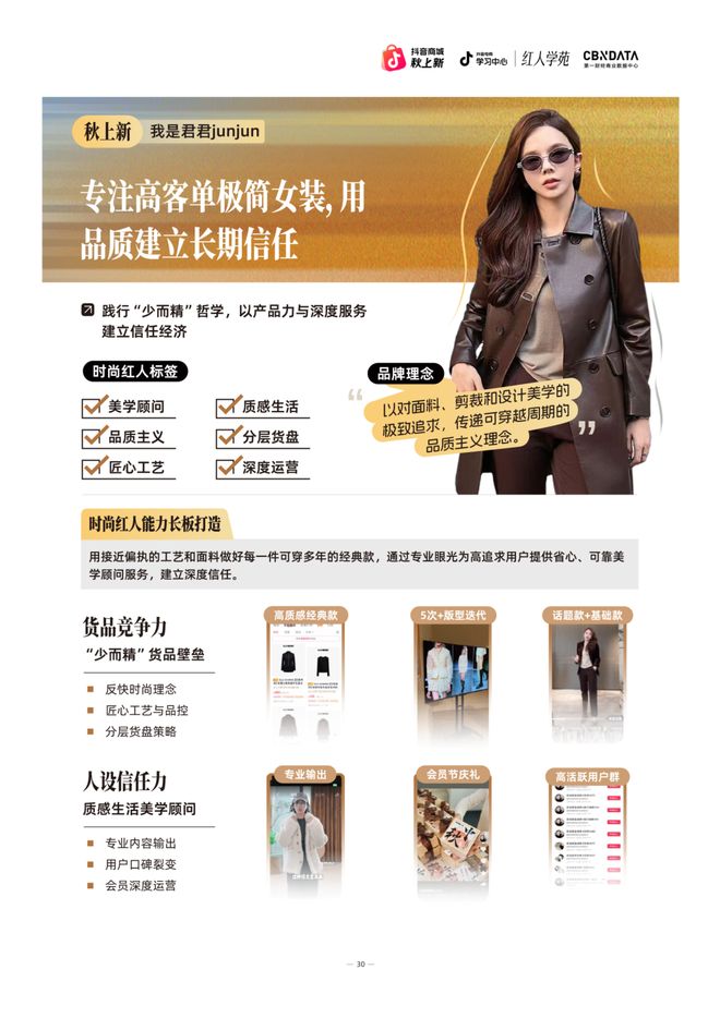 专注高客单极简女装的 @我是君君junjun,以“少而精”的经营理念在女装市场中开辟出独特的增长路径。