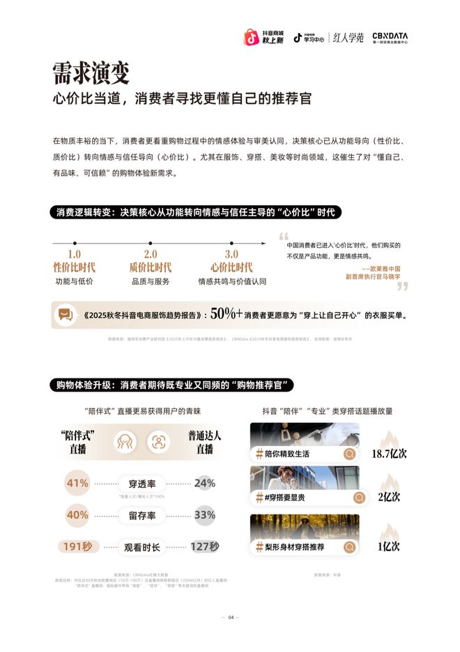 不知不觉间,市场决策逻辑已从功能导向演进为情感与信任导向。当性价比与质价比成为消费基础,“懂自己”与“可信赖”所构成的“心价比”已成为新的决策关键。而“时尚红人型商家”这一新兴业态,恰恰以其独特的人格化魅力和专业化商业能力,完美契合了“心价比”时代的市场需求,成为连接消费者与品牌的新枢纽。