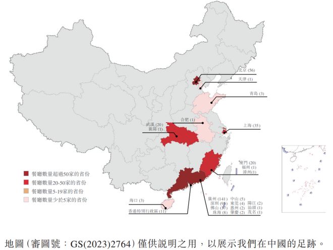 截至今年6月末,公司共有451家在营餐厅,其中直营331家、特许经营86家,还有101家新店筹备中,预计年底突破500家。