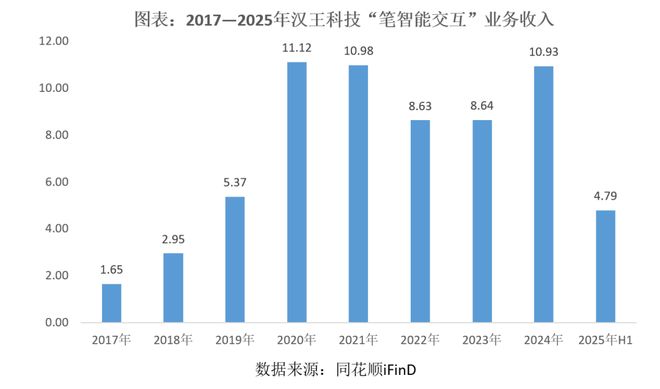 整体来看,汉王科技的笔智能交互业务收入,在经历疫情期间的高速增长后,近年来基本维持在10亿元/年左右的规模,增长有限。