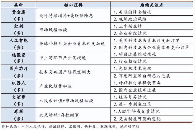 权益方面,我们认为短期市场连续反弹,外部冲击后企稳迹象明显,但成交额并未大幅释放,显示资金仍存观望情绪,后续四中全会、美联储议息会、APEC会议等一系列宏观大事即将逐步落地,短期建议维持均衡配置思路,短期看十五五规划,中长期科技或仍占优。