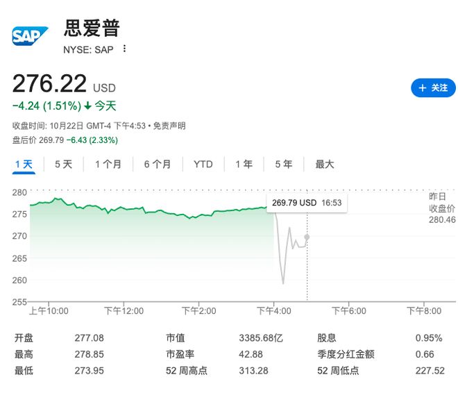 SAP近期股价表现不佳,其美股ADR股价在过去三个月下跌约9%,因此投资者希望这次季度财报能帮助公司重回正轨。然而,由于云业务收入不及预期,财报发布后,SAP在美股ADR盘后下跌约4%,随后跌幅有所收窄。