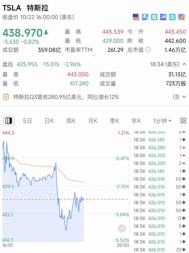 受此影响,特斯拉股价在美股盘后交易中直线跳水,一度大跌近5%,截至北京时间06:30,跌幅为2.96%。隔夜美股收盘,特斯拉小幅下跌0.82%。