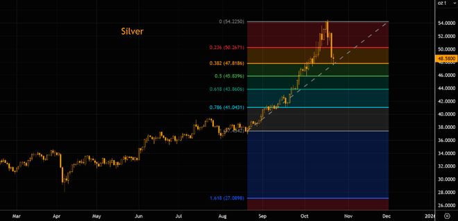 分析指出,48美元是当前市场多空力量的分界线,其重要性在斐波那契回撤分析中也得到印证。目前,银价正围绕其21日移动平均线波动,一条更短期的趋势线也位于48美元略下方,构成了密集的支撑区域。