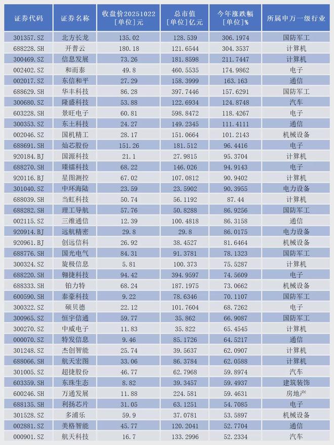 北方长龙、开普云、信息发展、和而泰、东信和平、华丰科技、隆盛科技、景旺电子、东土科技、国机精工10家公司股价成功实现翻倍。