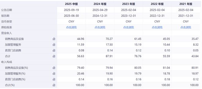 分业务来看,古茗的收入主要来源于加盟店,其中,销售商品及设备、加盟管理服务收入分别为45.0亿元、11.6亿元,同比增长41.8%、39.2%。