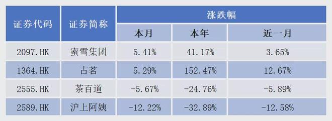 二级市场表现方面,截至10月21日收盘,今年以来,仅蜜雪冰城和古茗实现股价正增长,其中,古茗涨幅超过150%,蜜雪冰城涨幅41.17%。