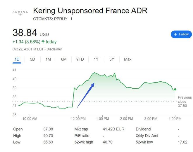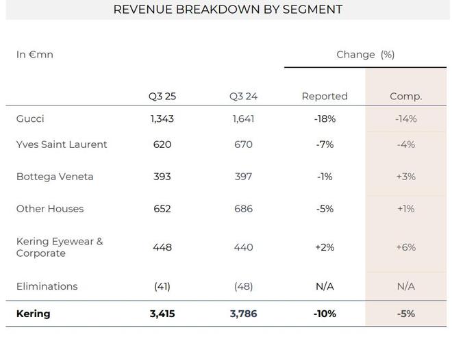 财报显示,三季度,开云的主力品牌古驰(Gucci)贡献集团将近四成营收,当季同店销售降幅较二季度收窄超四成,且降幅略低于分析师预期。圣罗兰(YSL)的同店销售降幅环比收窄过半,葆蝶家的同店销售加快增长。