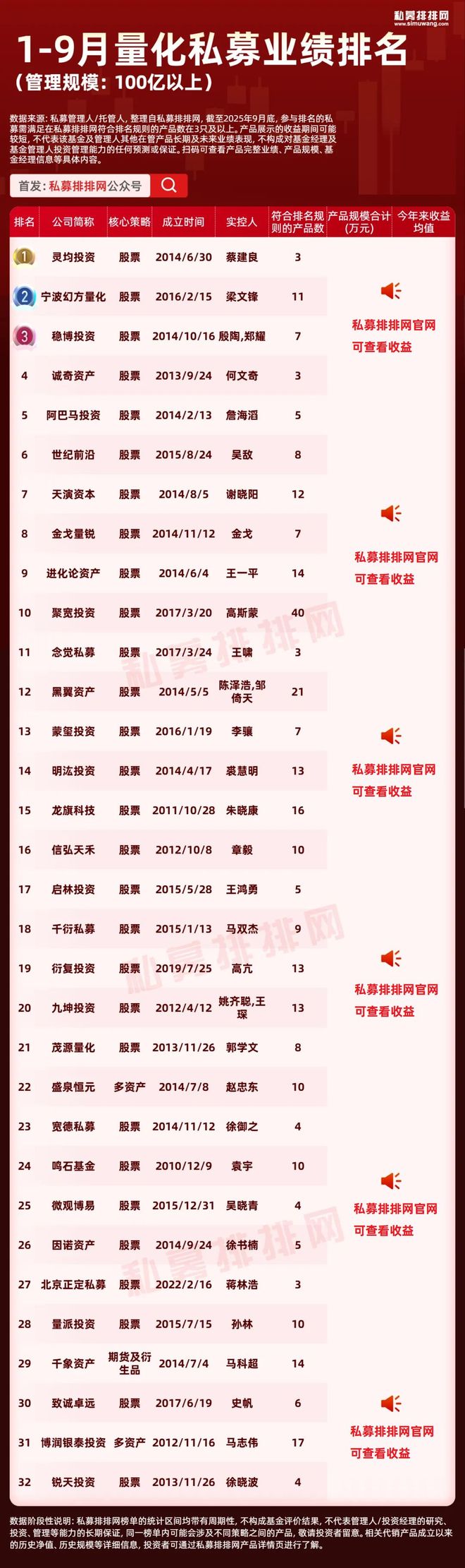 百亿量化:灵均、幻方、稳博位居前三!幻方量化排名飙升!