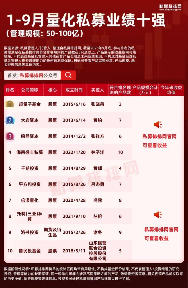 50-100亿:超量子基金夺冠!洛书投资闯入前10!