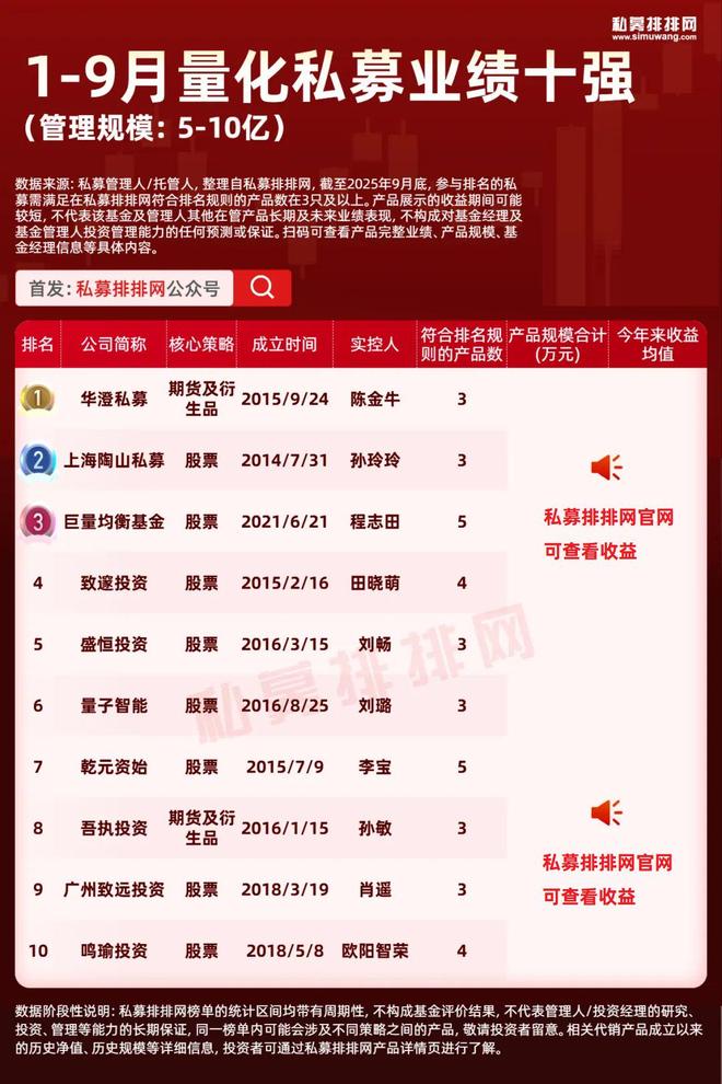 5-10亿:华澄私募、上海陶山、巨量均衡位居前三!