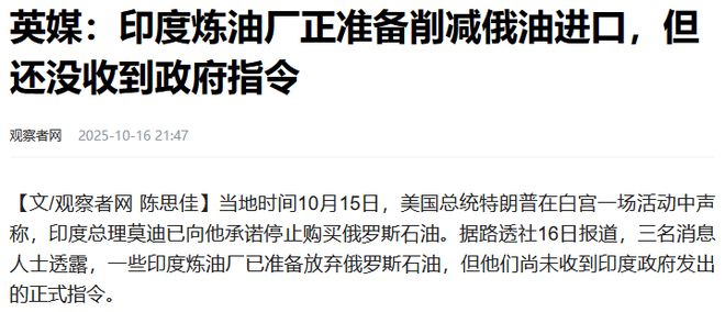 因为站在特朗普的立场上,印度购买俄油是他特别在意的问题。