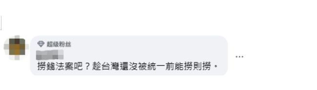 还有网民讽刺称,“捞钱法案吧?趁台湾还没被统一前能捞则捞。”