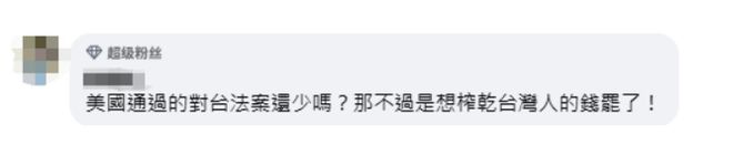 有人说,“美国通过的对台法案还少吗?那不过是想榨干台湾人的钱罢了!”