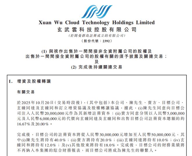 日前,国内知名AI+SaaS厂商玄武云(02392.HK)发布了两则公告:公司拟通过转让20%股权引入战略投资人廉健。同时,公司现任董事会主席陈永辉将以增资方式,将原上市主体的销售云业务转为独立运营。