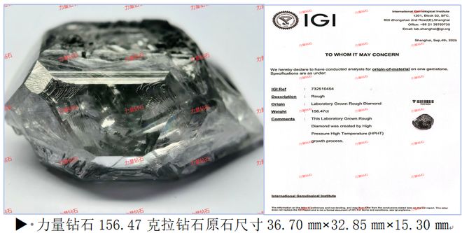 就在减持公告前不久,10月18日,力量钻石官方还宣布培育出了全球最大的钻石,打破世界纪录。当日,力量钻石宣布通过高温高压法成功培育出一颗重达156.47克拉的钻石原石,并通过了国际宝石研究院(IGI)鉴定,该钻石为目前已知全球最大的人工培育钻石单晶,刷新了2022年由Meylor Global公司保持的150.42克拉世界纪录。