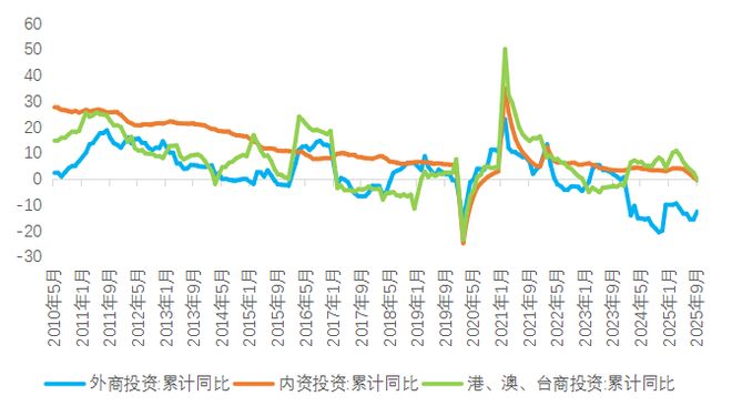 此外,固定资产投资领域还有不少其他结构性和深层次矛盾可能阻碍增长。例如,分登记注册类型看,外商投资降幅最大。内资企业固定资产投资同比下降0.6%,港澳台企业固定资产投资下降0.3%,外商企业固定资产投资下降12.6%。分地区看,东部地区投资增长相对乏力。东部地区投资同比下降4.5%,中部地区投资增长1.5%,西部地区投资增长1.5%,东北地区投资下降8.4%。从企业性质比较看,民间投资有下行明显。1-9月,国有投资增长1.0%,民间投资-3.1%。