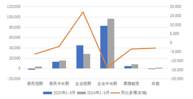 图4:2024与2025年前三季度信贷各分项增量对比