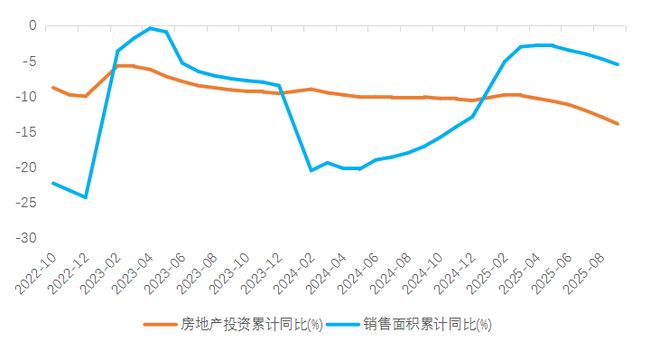 图5:房地产开发投资与商品房销售面积累计同比