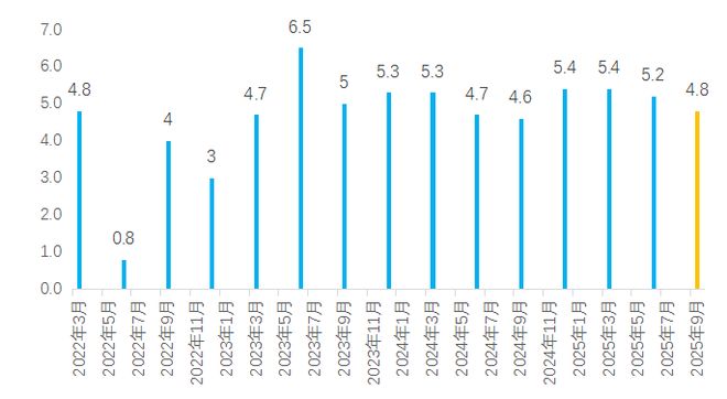 最后,出口表现显著超出预期。以美元计算,前三季度我国出口增速为6.1%,三季度出口增速为7.84%,显示当前我国出口受美国加征关税的实际影响较为有限,并呈现出以下特征和趋势:一是出口规模保持相对较高水平。显示尽管当前外贸环境有所恶化,但对中国出口整体影响可控。二是中国对美出口减少的趋势未变。从对美出口占中国整个出口的比重来看,已从特朗普第一任内的20.7%左右降至10.44%。三是出口增长主要体现在对非美市场出口扩大。从出口市场比较来看,三季度中国对东盟、欧盟、拉美、非洲等地区出口保持增长。截至目前,中国已成为全球166个国家和地区的前三大贸易伙伴,是68个共建“一带一路”国家的最大贸易伙伴。四是集成电路、汽车、船舶等机电产品和高新技术产品推动中国出口走高。9月机电产品出口较去年同期增长12.6%,在全部中国商品出口金额中的比重已高达63.2%。