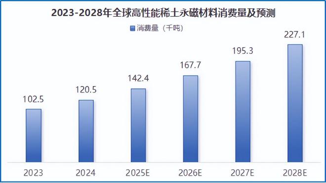 现在人形机器人、低空经济这些新兴领域,对高性能稀土永磁材料需求也越来越大。行业预测到2028年,全球高性能稀土永磁材料消费量能涨到23万吨左右。