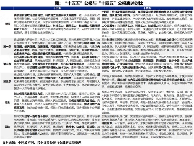 兴证策略张启尧对比十四五,十五五有哪些增量,则更为具体:
