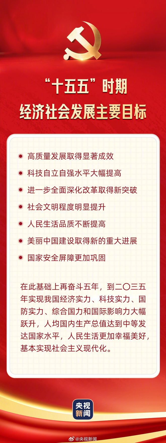 目标:定调“高质量发展”,“科技自立自强水平大幅提高”写入发展目标;二〇三五年目标新增“国防实力”、“国际影响力”大幅跃升。