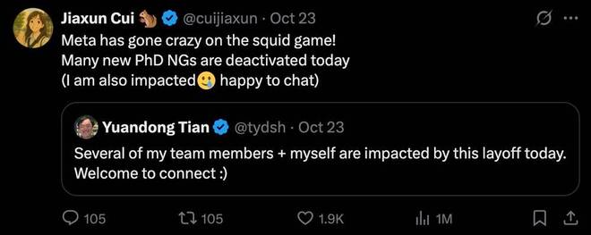 除TBD实验室之外,Meta 其他的 AI 团队经历着重大的人事变化,许多工程师看到自己的同事被解雇,这也是硅谷AI团队迄今为止遭遇的最大规模裁员。