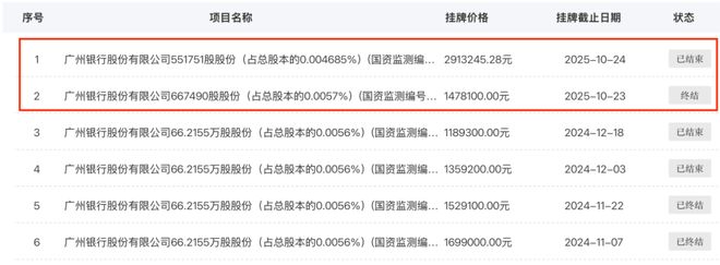 2024年末,深交所披露了广州银行曾有4笔股权转让挂牌,出让方均是广东省电信实业集团(持股66.22万股)。